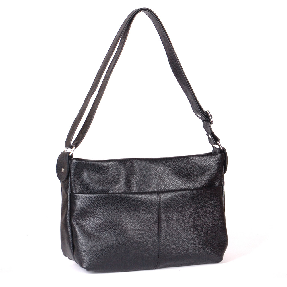 Сумочка середнього розміру з якісної натуральної шкіри з ручкою, що регулюється. Достатня кількість кишень робить сумку неймовірно практичною: кожній дрібниці тут знайдеться своє місце. Сумка зверху закривається на блискавку і має дві зручні кишені з лицьового та тильного боку. Усередині ― синтетична підкладка, одне загальне відділення, три кишені для мобільного та для дрібних предметів, одна накладна кишеня на блискавці та ще одна кишеня на блискавці. Завдяки регулюванню ручки в широкому діапазоні, сумочку комфортно носитиме і на лікті, і на плечі.